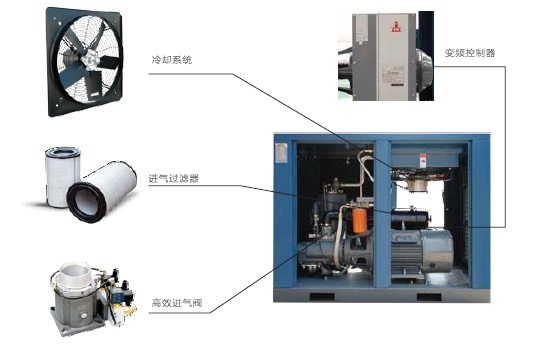 开山永磁变频螺杆机是永磁电动机、变频集成控制技术与开山自主的螺杆型线技术的组合。